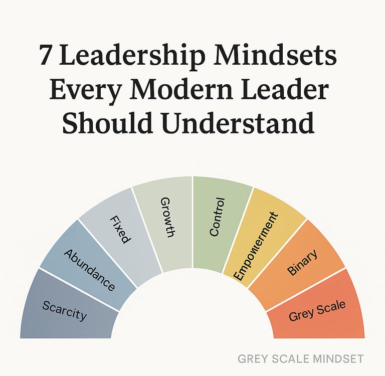 Below are seven leadership mindsets that quietly shape modern leadership. Understanding them is the first step toward leading with more nuance, clarity, and impact.