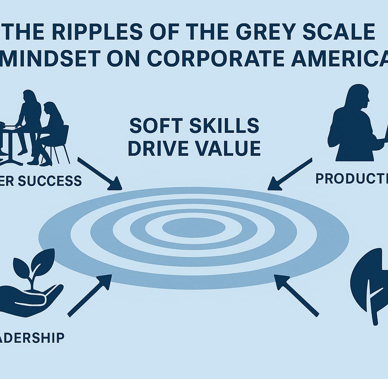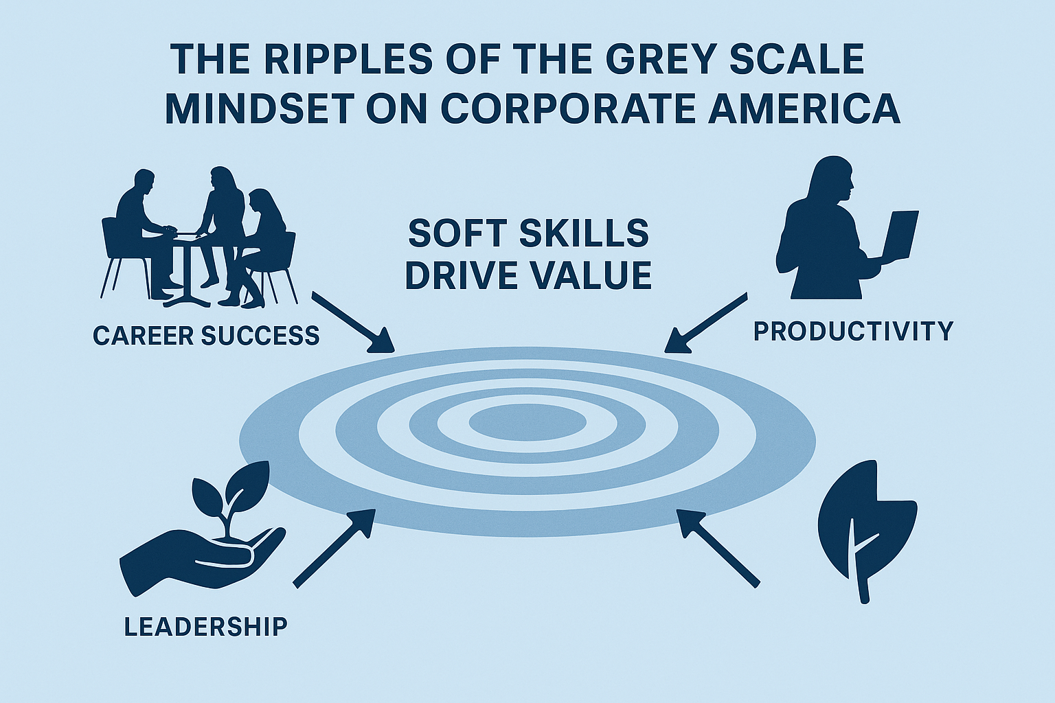 The Grey Scale Mindset (GSM) reframes success in corporate America by moving beyond binary thinking—hard skills versus soft skills—and highlighting the nuanced human capabilities that create lasting economic value. By cultivating traits like communication, adaptability, and leadership, people and organizations don’t just move ahead in their careers—they generate clear returns in performance, profitability, and long-term growth. The “ripples” of GSM reach beyond individuals, shaping firms, industries, and even the broader labor market.
